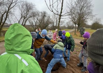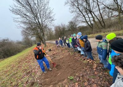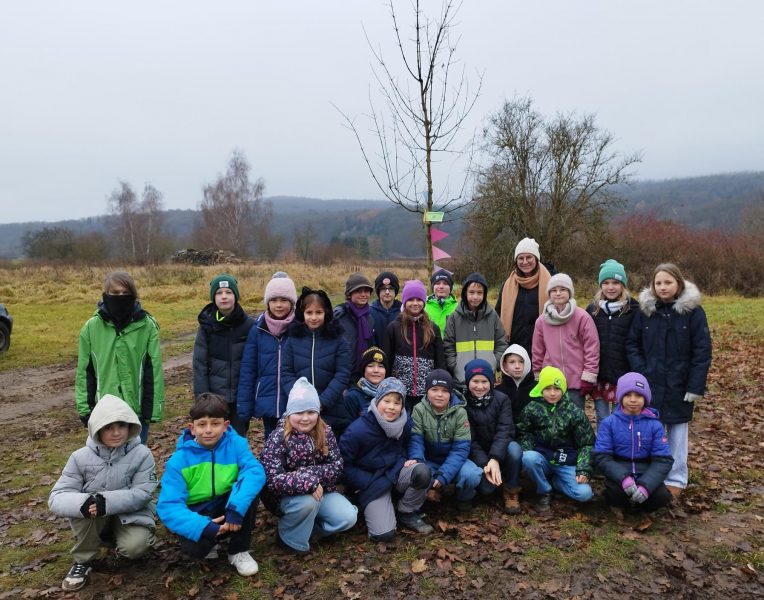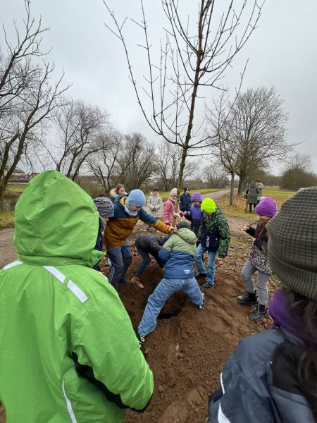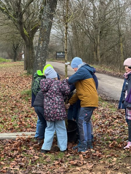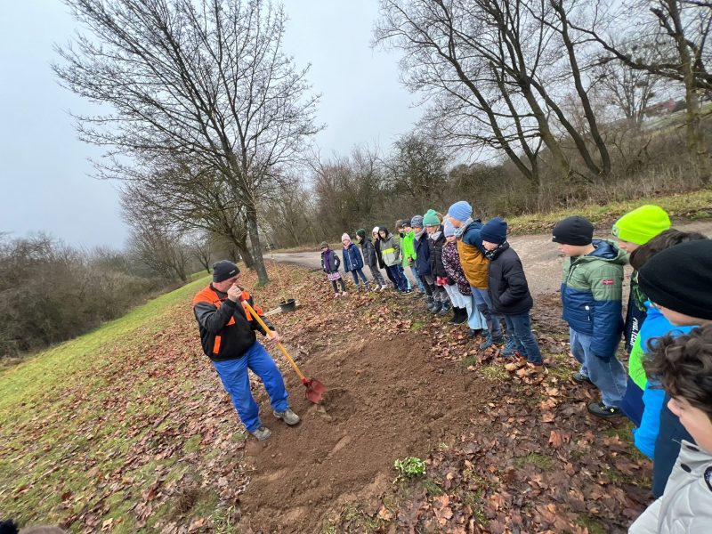 Die 4. Klasse pflanzt am 09. Dezember 2025 einen Baum für ihren Wohnort Kemmern