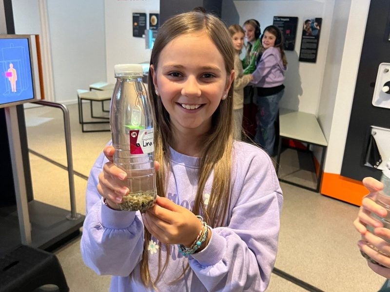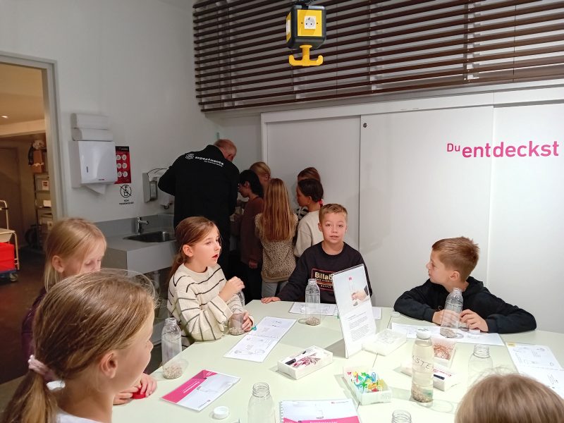 Im Mini Dome – der 360-Grad-Kuppel sahen sie eindrucksvolle Filme, gemeinsam haben sie einen „Flaschentaucher“ gebastelt.