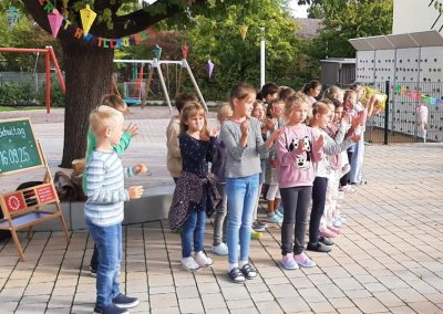 Bei unserer kleinen Einschulungsfeier hörten die Kinder die Geschichte vom ängstlichen Jakob. Dieser bekam von seinem Patenonkel eine „Käppi“ geschenkt, die ihn immer daran erinnern soll, dass Gott ihn behütet.