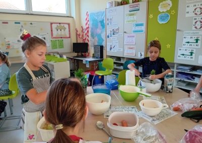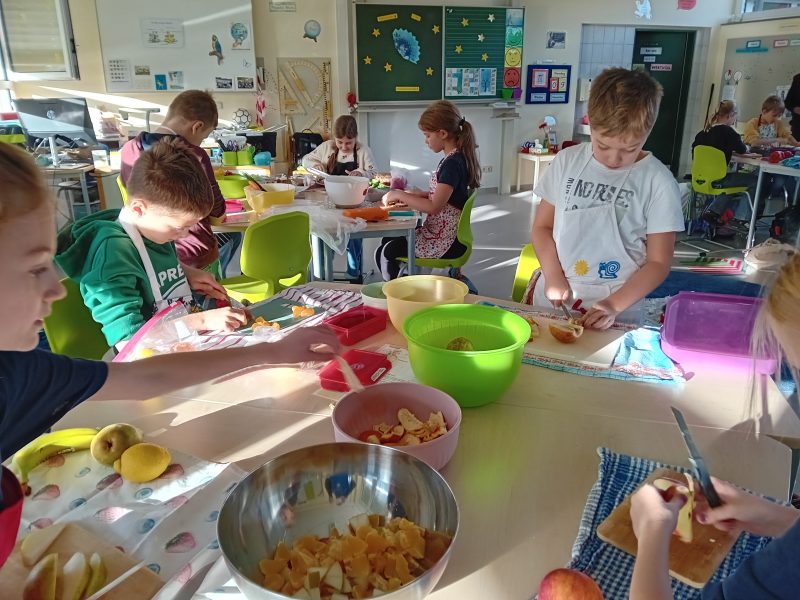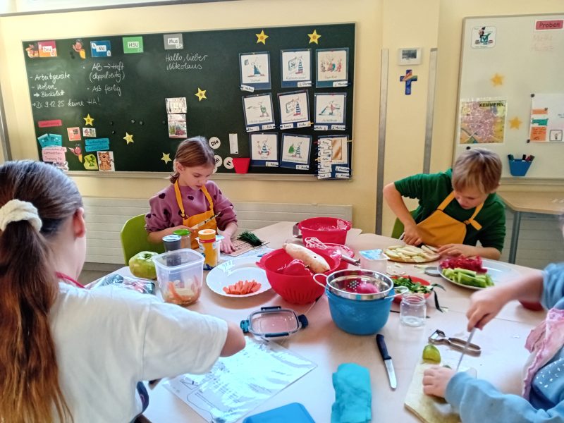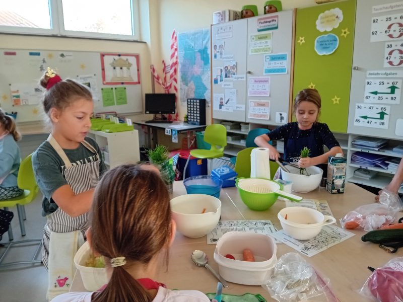 Die Kinder lernten dabei etwas über eine ausgewogene Ernährung und dass vitaminreiches Essen spannend ist. Vor allem aber erlebten sie, dass das Zubereiten gekonnt sein muss und Freude bereiten kann.