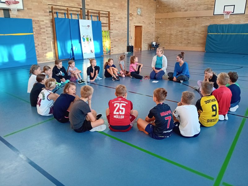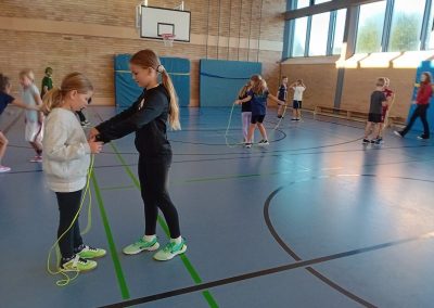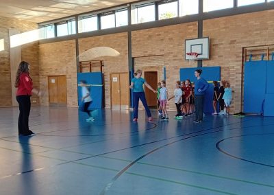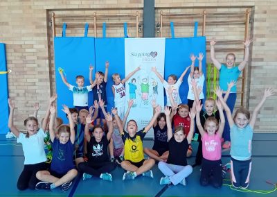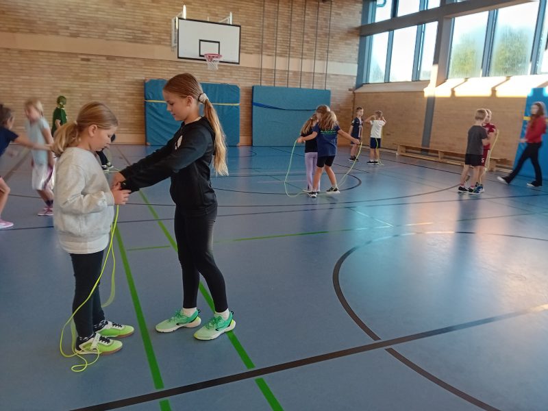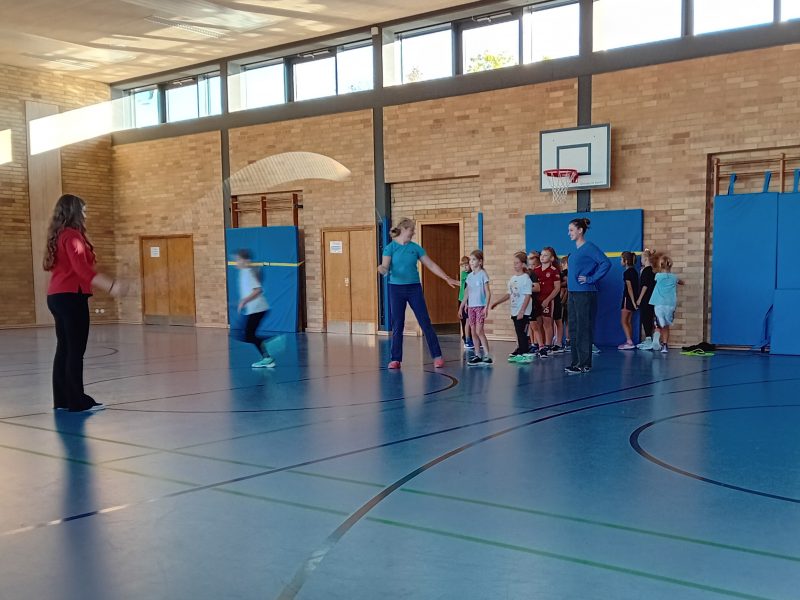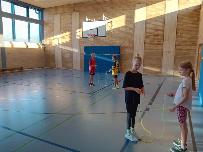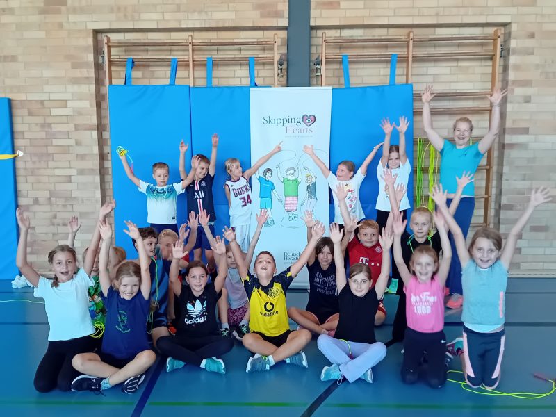 Am Mittwoch, 01.10.2025 war bei uns Frau Susanne Püls mit dem Projekt „Skipping Hearts“ der Deutschen Herzstiftung bei uns zu Gast. Während zwei Schulstunden lernten die Schüler der 3. Jahrgangsstufe von der zertifizierten Workshopleiterin vielfältige Sprünge kennen. Die Kinder erprobten sich alleine, mit dem Partner oder in der Gruppe. Am Ende stand eine kleine Vorführung für die anderen Klassen.